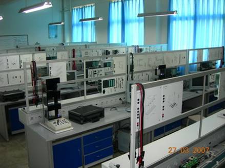 S7-200小型叠装式S7-222可编程逻辑控制器、S7-300中型模块式S7-315DP可编程逻辑控制器、实用模型等30余套。设备总价值约430万元;实验室总面积